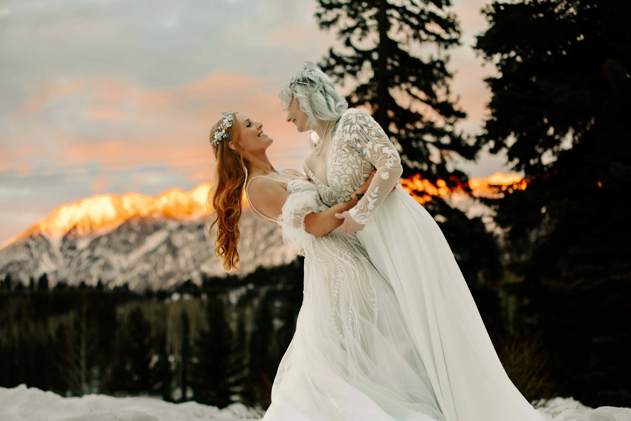 Averie and Maddie brought in a neon sign before they became the go-to wedding detail, and somehow it felt like it had always belonged here. The soft glow added just the right amount of personality—modern, playful, and warm without ever feeling overdone. Paired with the lodge’s holiday décor, twinkle lights, and snow-covered backdrop, it gave the whole weekend a cozy energy that felt elevated but still easygoing.