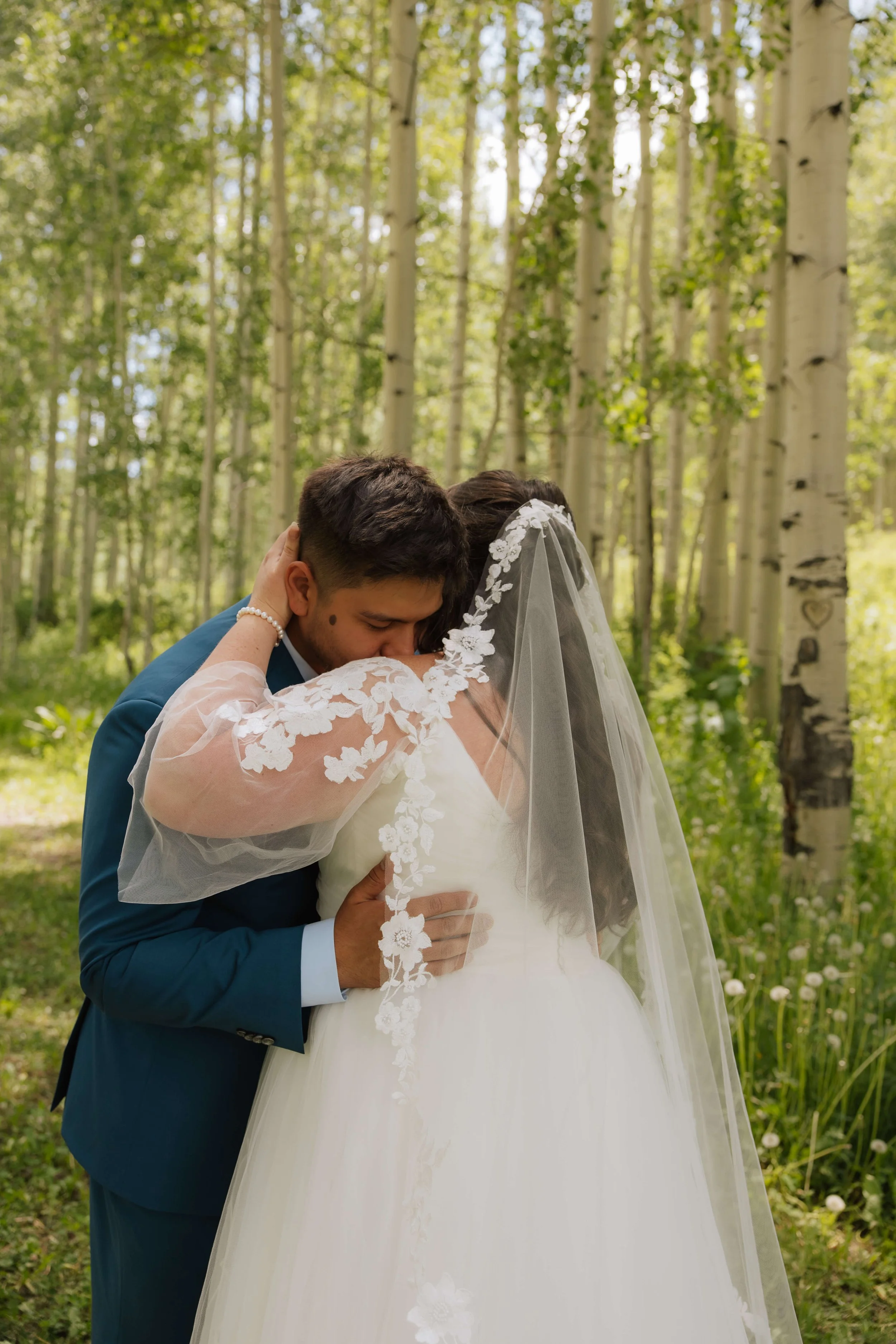 Savannah and Anthony’s decor was spot on. They had stunning flowers from Lady Southwest that were so dreamy. Their ceremony spot was outlined by two beautiful wooden and marble side tables, adorned with antique vases filled with more dreamy flowers. Their reception carried on the elegance with tables with alternating blue or white table cloths, purple wisteria flowers dripping from the chandeliers, and candles and bud vases dotting the tables. The whole day felt deeply thought through and carefully planned, from the decorations to the hand fasting ceremony, to the cake large enough for everyone, to the epic dance floor. It was such a magical day.